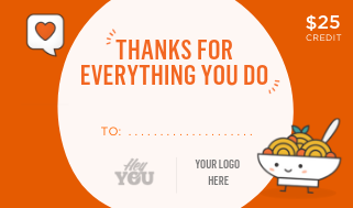 We’ve been using Hey You vouchers for our Employee Rewards Program for over 4 years now, and will continue to do so. Hey You vouchers are the most popular and demanded perk in our Rewards Program. We use the ‘Thanks for everything you do!’ template to thank our employees for all their hard work. They're a great way to recognize our staff's contribution to the company.